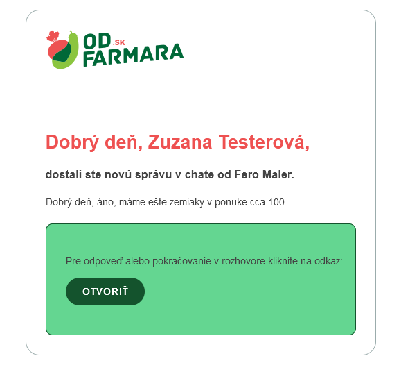 Ak vám farmár alebo zákazník pošle správu na Odfarmara.sk, okamžite o tom dostanete upozornenie na svoj email.